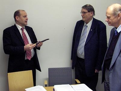 Sivun kuva alhaalla (kuvan copyright Hermann Alatalo): KOTAn puheenjohtaja 2003-08 Ari Konttas (kuvassa vasemmalla) sai seuralta tammikuussa 2009 lahjaksi puukon, jonka hänelle ojensivat seuran puheenjohtaja Asko Järvinen 2009 (keskellä) ja seuran aiempi pitkäaikainen puheenjohtaja (1990-2002) Jukka Ala-Peijari (oikealla).